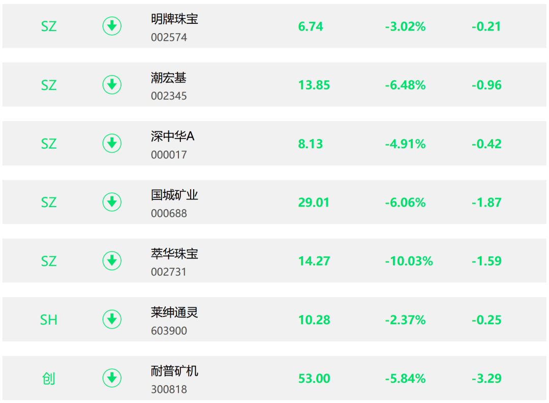 1月29日早盘,黄金概念股突然快速跳水。截至09:51,萃华珠宝跌停,耐普矿机跌超7%,潮宏基、国城矿业、深中华A、明牌珠宝、莱绅通灵等跟跌。