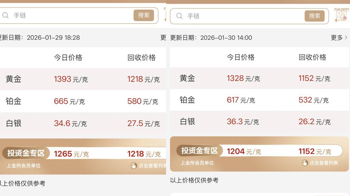1月29日与1月30日水贝会金价对比图