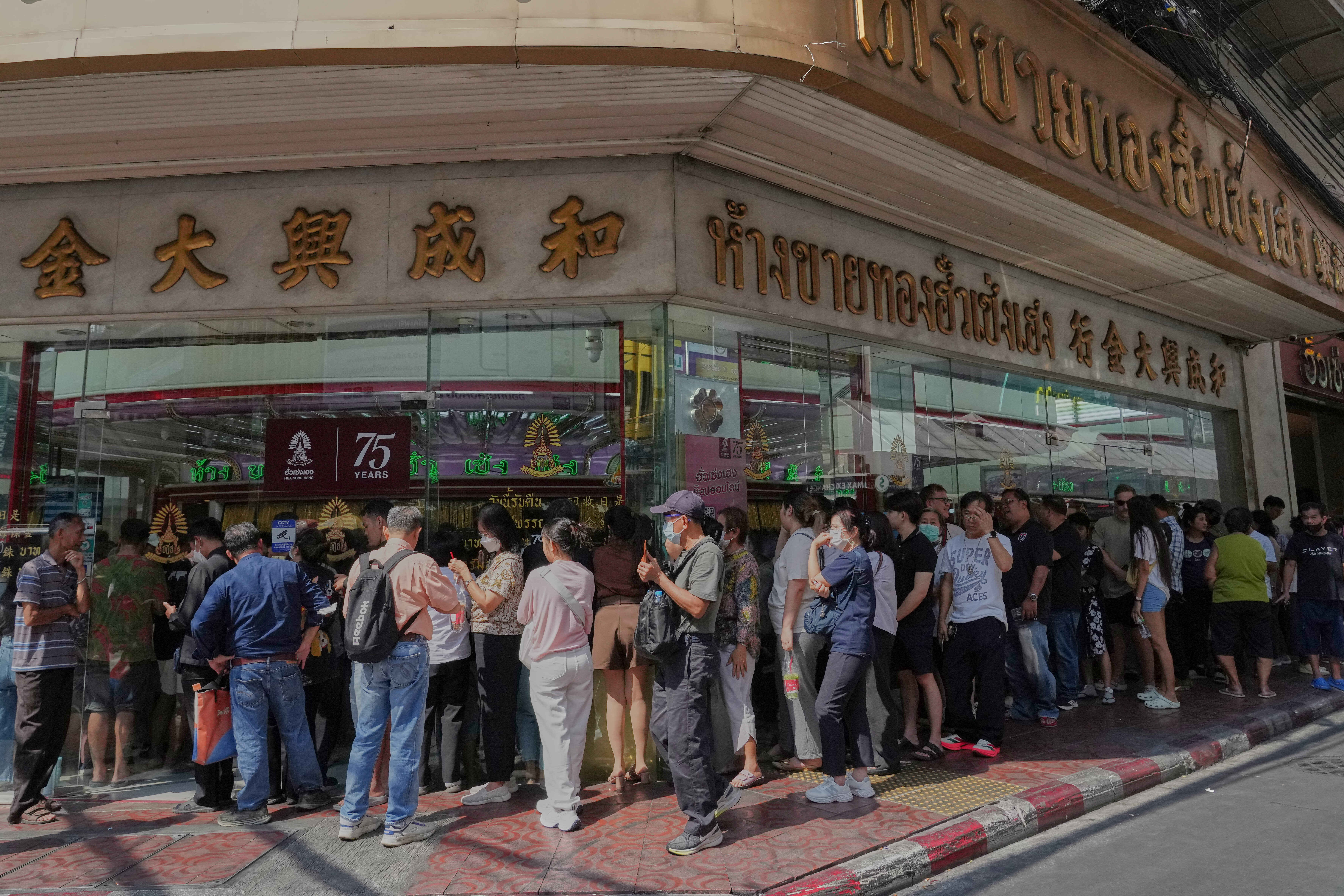1月29日,在泰国曼谷,人们排队等待进入一家金店。 新华社/美联