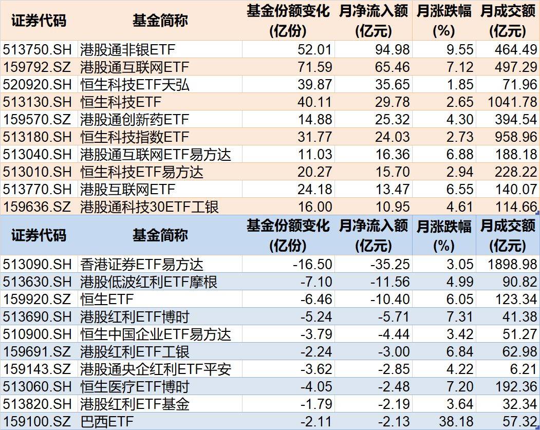 值得注意的是,虽然本月A股三大指数均出现上涨,但资金借道ETF离场迹象明显。