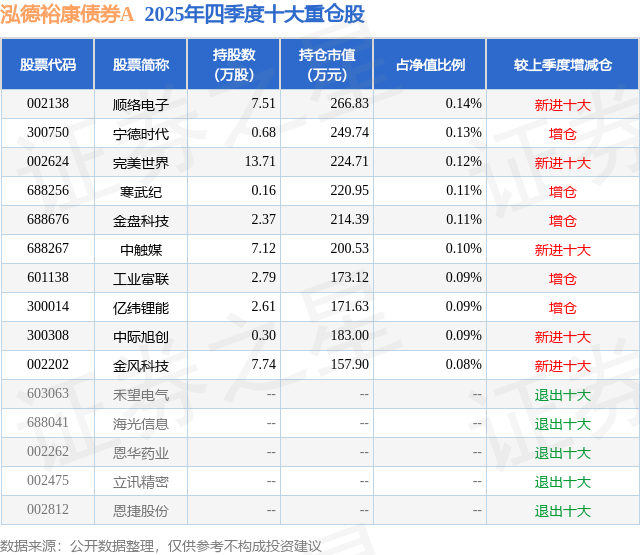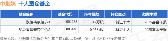 根据2025基金年报公募基金重仓股数据,重仓该股的公募基金共2家,其中持有数量最多的公募基金为泓德基金的泓德裕康债券A。泓德裕康债券A目前规模为18.64亿元,最新净值1.4106(1月30日),较上一交易日下跌0.18%,近一年上涨10.09%。该公募基金现任基金经理为刘星洋 刘风飞。刘风飞在任的基金产品包括:泓德裕祥债券A,管理时间为2024年9月26日至今,期间收益率为10.24%;泓德裕荣纯债债券A,管理时间为2025年2月8日至今,期间收益率为4.2%;泓德裕丰中短债债券A,管理时间为2025年2月8日至今,期间收益率为1.23%。