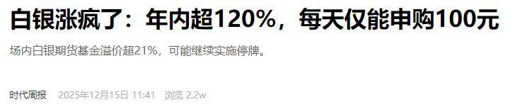 可你以为这已经够狂了,白银就更离谱,过去一年,白银涨了120%!