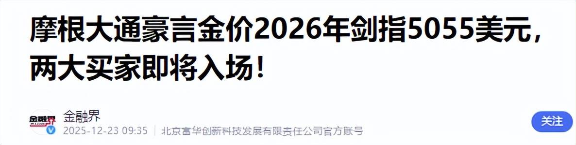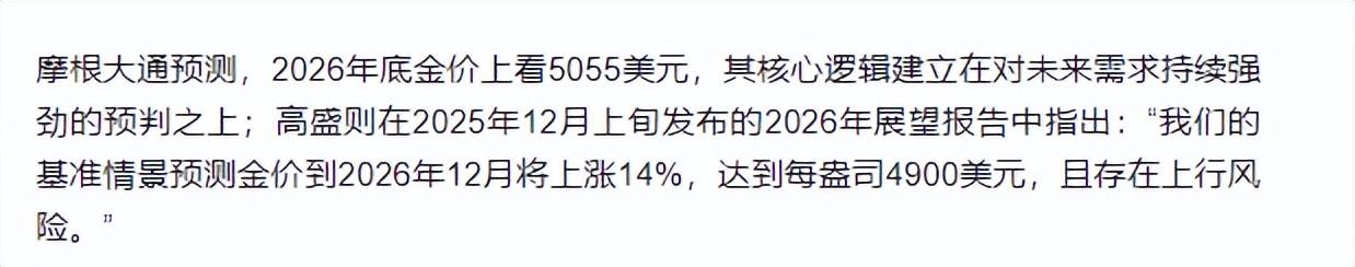 别忘了,现在已经有一堆投行放出口风:摩根大通黄金目标价5055美元/盎司;高盛预测涨到5400美元;美国银行看高至6000。