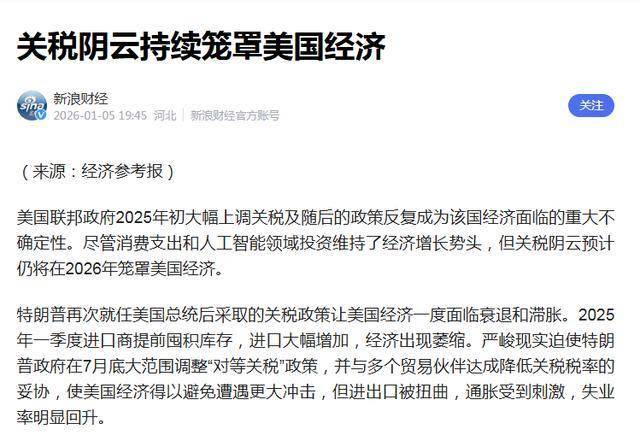 新浪财经2026-01-05关税阴云持续笼罩美国经济