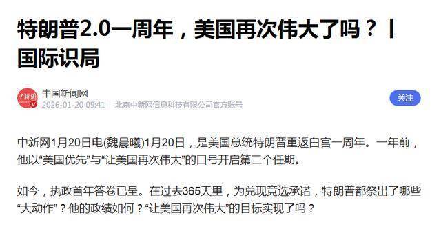中国新闻网2026-01-20特朗普2.0一周年,美国再次伟大了吗?丨国际识局