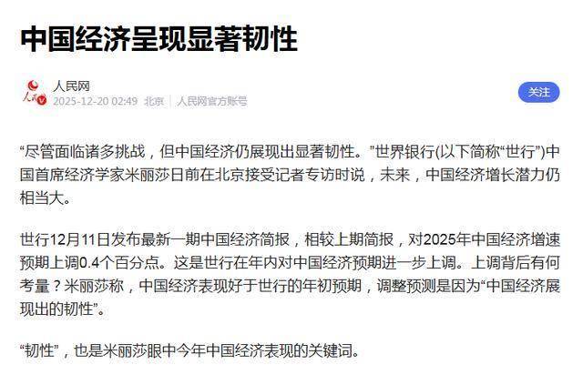 人民网2025-12-20中国经济呈现显著韧性