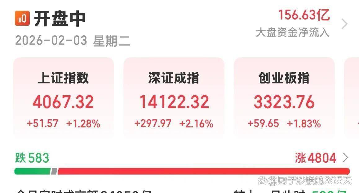 市场情绪在尾盘被推向高潮,指数大涨加速,成交量也从上午的缩量状态转为明显放量。有一个关键数据值得注意:被称为“内资”的沪深两市主力资金,在2月3日这一天,罕见地实现了净流入,金额约为160亿元。这在一定程度上扭转了前期持续流出的态势。涨停的股票数量超过110只,显示出极强的市场攻击性。而跌停股票数量从上午的30只左右,减少到下午收盘时的15只左右。