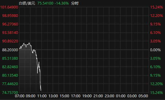 据Choice数据,2月5日,国际现货黄金、白银盘中跳水,跌幅进一步扩大,截至10:52现货黄金报4815.03美元/盎司,日内跌3.01%;现货白银报75.54美元/盎司,日内跌14.36%。