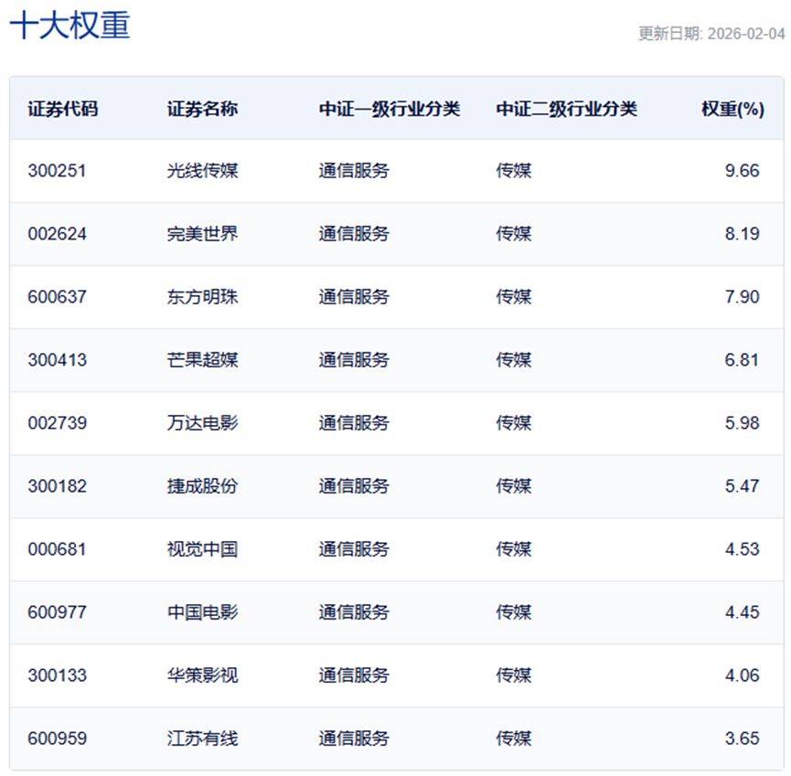 中证影视主题指数主要权重股