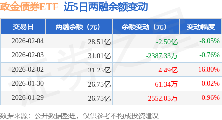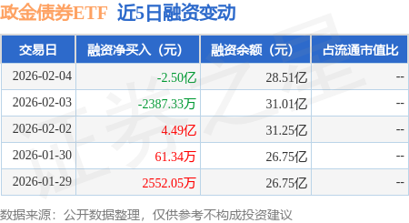 证券之星消息,2月4日,政金债券ETF(511520)融资买入9390.7万元,融资偿还3.44亿元,融资净卖出2.5亿元,融资余额28.51亿元。