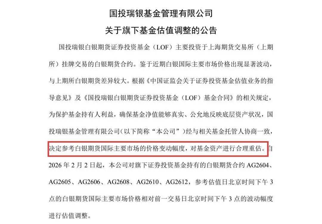 一切的导火索,关键在于2月2日晚间,国投瑞银基金突然公告,因国际银价暴跌,将基金的估值方法改为参考国际价格,导致该基金单日净值暴跌了31.5%。