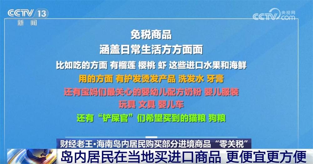 再来看看能买什么?政策实行正面清单管理,免税商品目录有202种!涵盖了咱们日常生活的方方面面,比如吃的方面,有榴莲、樱桃、虾这些进口水果和海鲜;用的方面,有护发烫发产品、洗发水、牙膏;还有宝妈们最关心的婴幼儿配方奶粉、婴儿服装、玩具、文具、婴儿车,还有“铲屎官”们希望买到的猫粮、狗粮。而且这份清单会根据海南的实际情况适时调整。