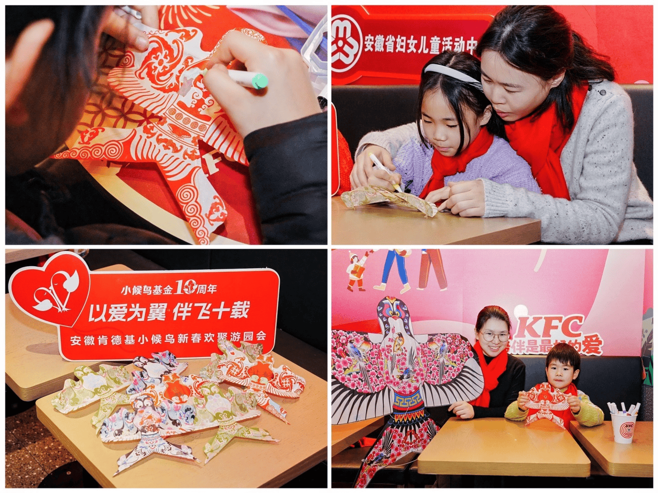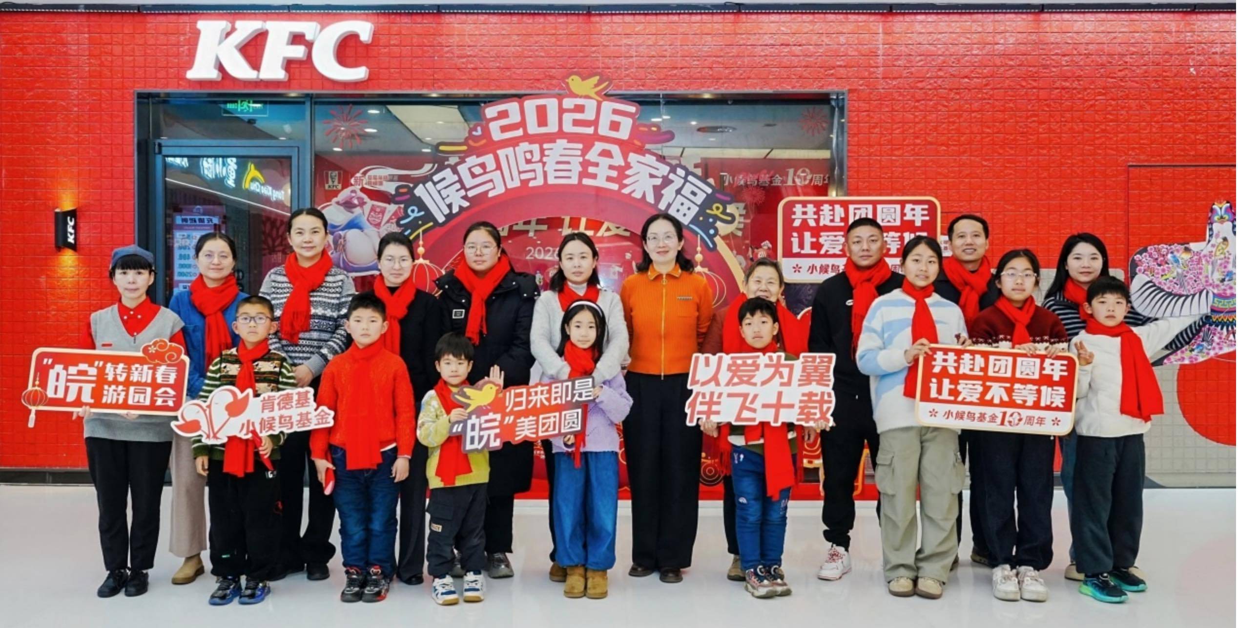 2016年,肯德基携手中国儿童少年基金会成立肯德基小候鸟基金,长期呵护留守、流动和困境儿童的成长。今年,恰逢肯德基小候鸟基金成立十周年。作为十周年系列活动的暖心开篇,此次新春“共赴团圆年,让爱不等候”主题公益行动,不仅延续了十年来对“小候鸟”群体始终如一的关爱承诺,更立足留守、困境儿童的差异化需求,助力“小候鸟”外出务工的父母踏上归乡之路,将远方的牵挂化作眼前实实在在的拥抱。同时,在全国23个城市,邀请“小候鸟”家庭欢聚肯德基餐厅,通过“小候鸟欢聚游园会”丰富多彩的民俗体验和妙趣横生的游戏互动,为“小候鸟”们编织一段洋溢着欢声笑语与浓浓年味的幸福时光。