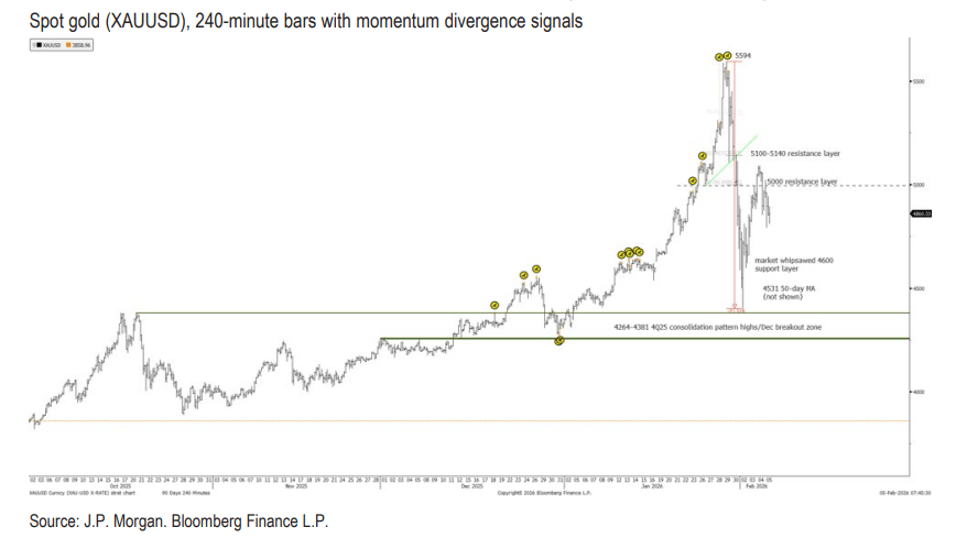 摩根大通技术团队分析认为,近期黄金价格表现出短期的“喷发式”反转特征,这通常是盘整期到来的前兆,但这绝非长期反弹的终结。
