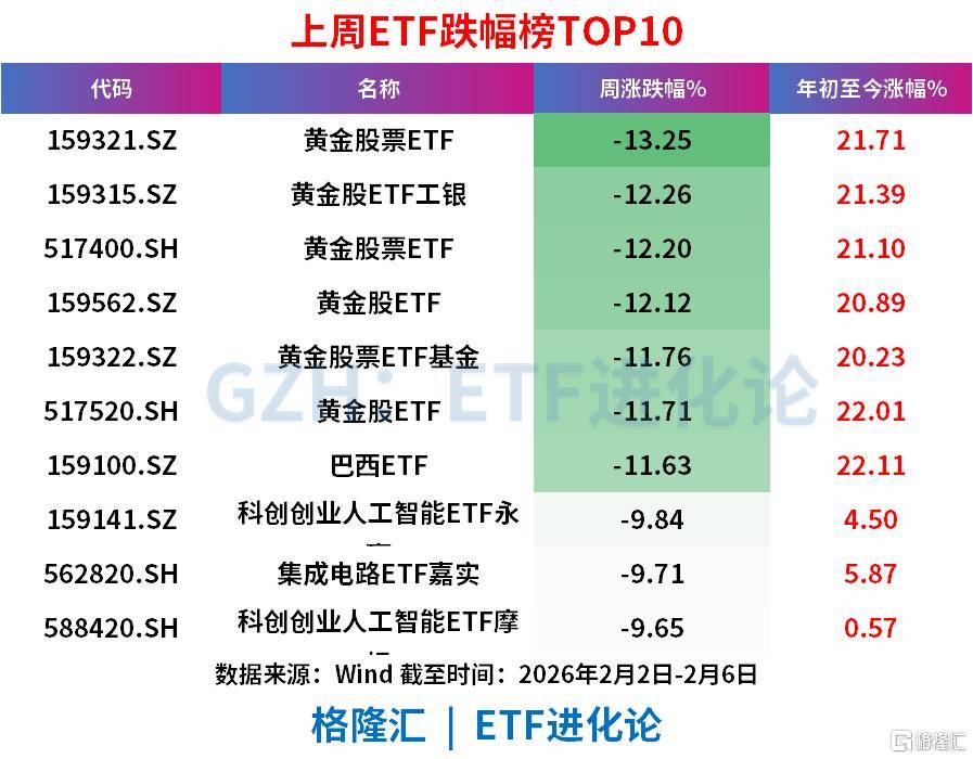 黄金股票ETF、黄金股ETF工银、黄金股票ETF、黄金股ETF、黄金股票ETF基金、黄金股ETF、巴西ETF上周分别跌13.25%、12.26%、12.20%、12.12%、11.76%、11.71%、11.63%。