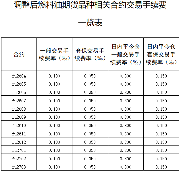 3月9日,上海期货交易发布通知,经研究决定,自2026年3月11日交易(即3月10日晚夜盘)起:燃料油期货已上市合约交易手续费调整为成交金额的万分之一,日内平今仓交易手续费调整为成交金额的万分之三。同时,调整燃料油期货交易限额:燃料油期货各合约的日内开仓交易的最大数量为1500手。